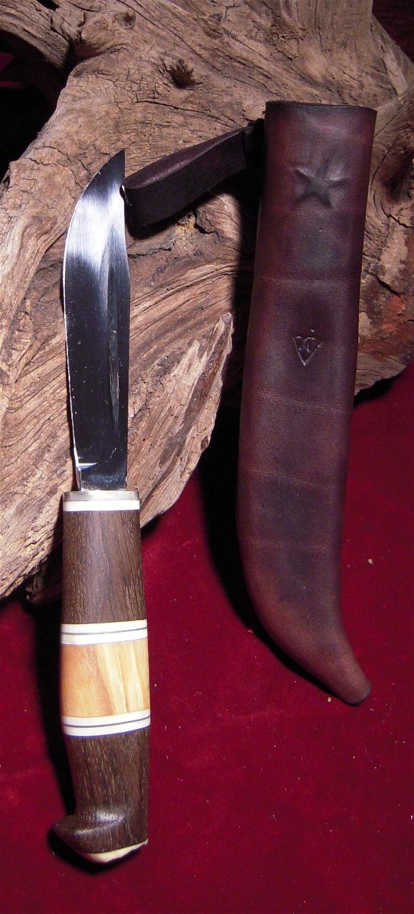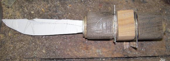 Ein Messer selber zu bauen ist eigentlich garnicht so schwierig...... Man nimmt eine Klinge, haut hinten ein Stück Holz drauf, raspelt alles weg was nicht nach Messergriff aussieht, poliert das Ganze ein wenig und fertig ist das Messer. Details finden Sie unten.......: