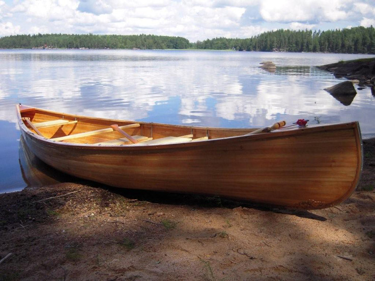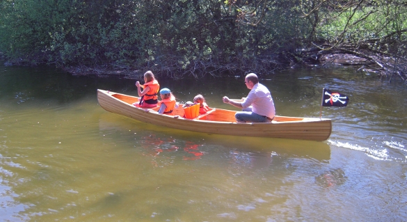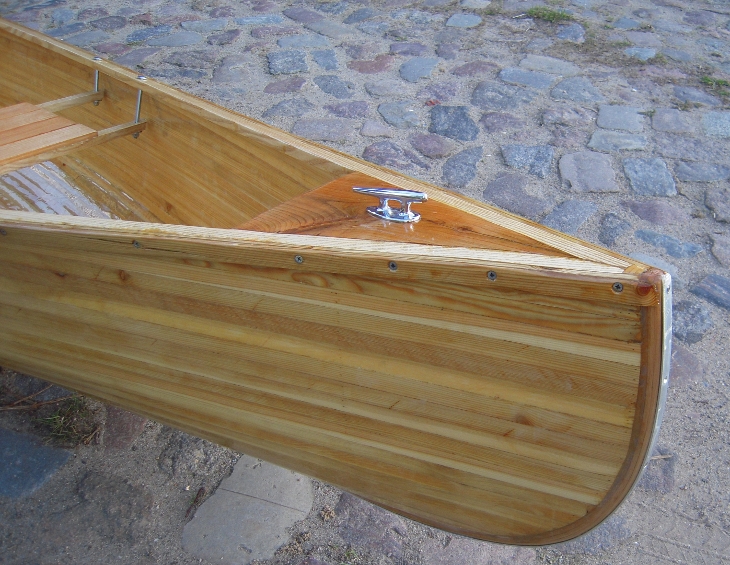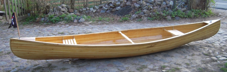 Ein kleines Kanu, 4,90 Meter lang, einen Meter breit, Lärche auf Glasfaser, 400 Stunden und ein ganz toller Name: